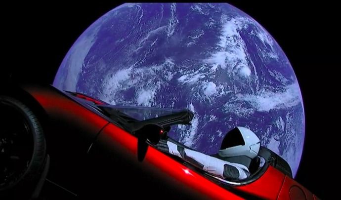 Instead Elon Musk the founder of Spacex, decided to send his electric car, a red Tesla roaster with an astronaut dummy behind the wheel.
